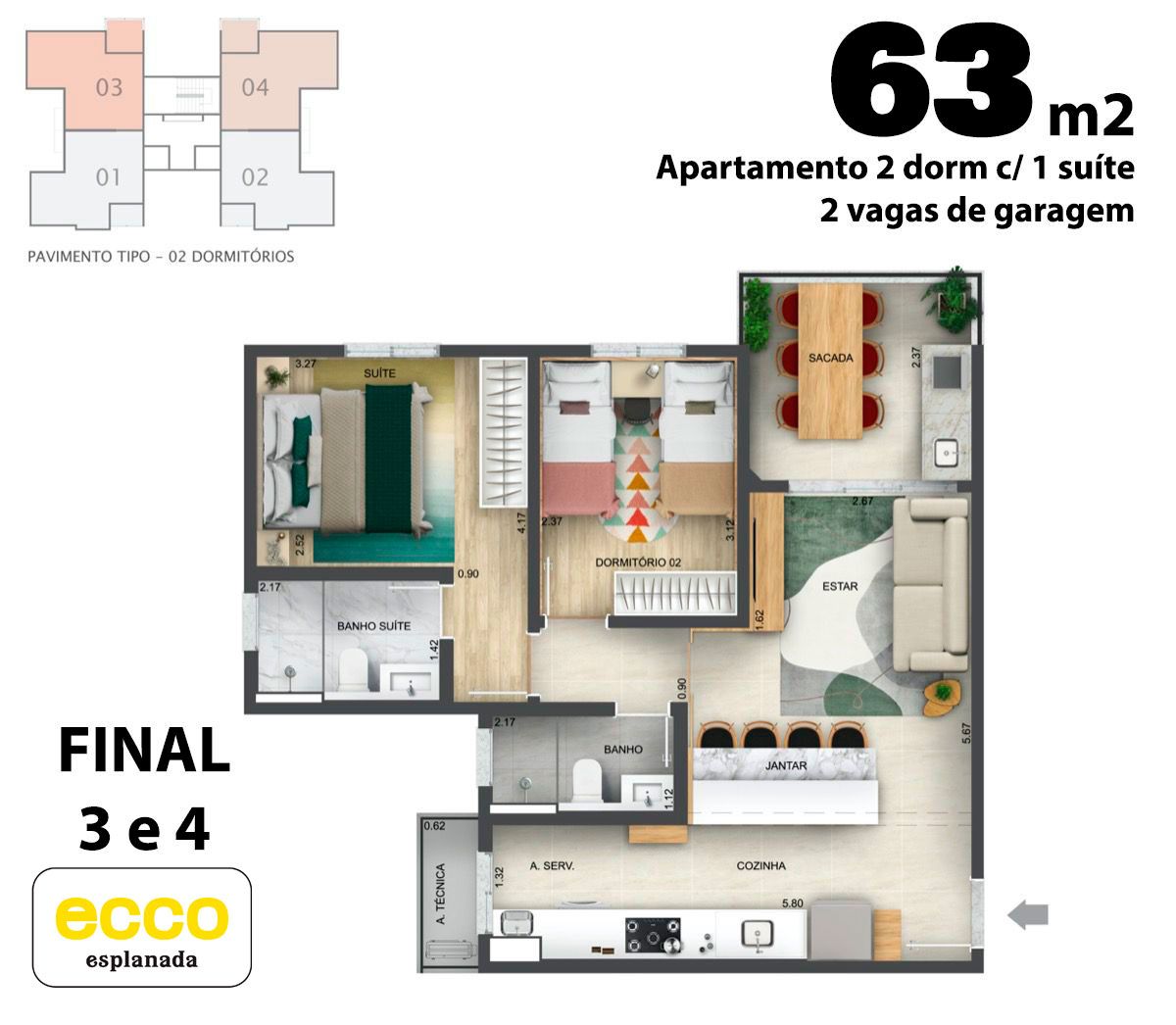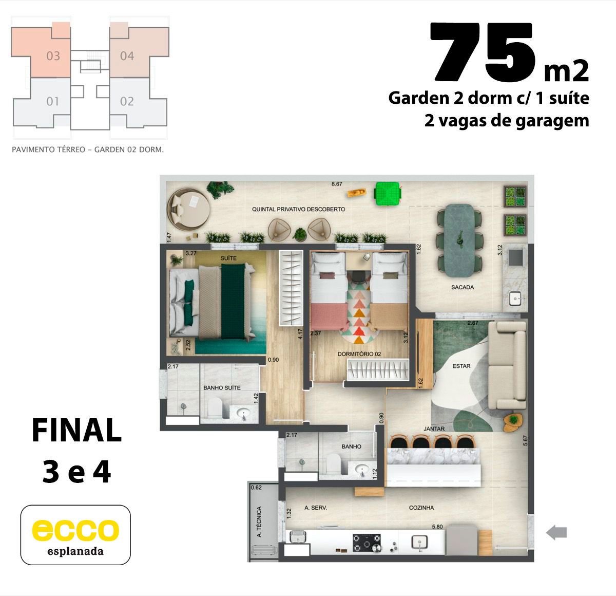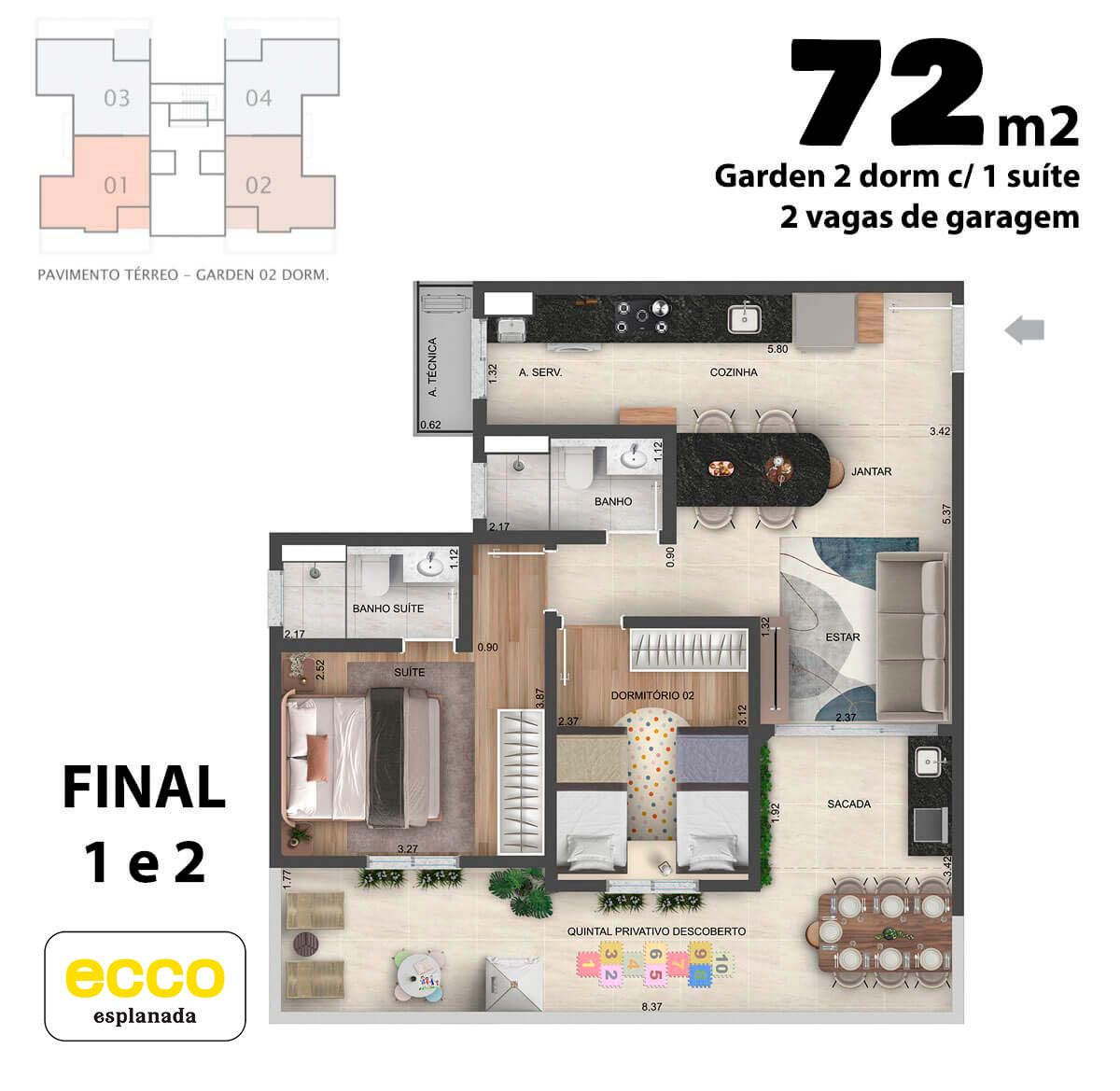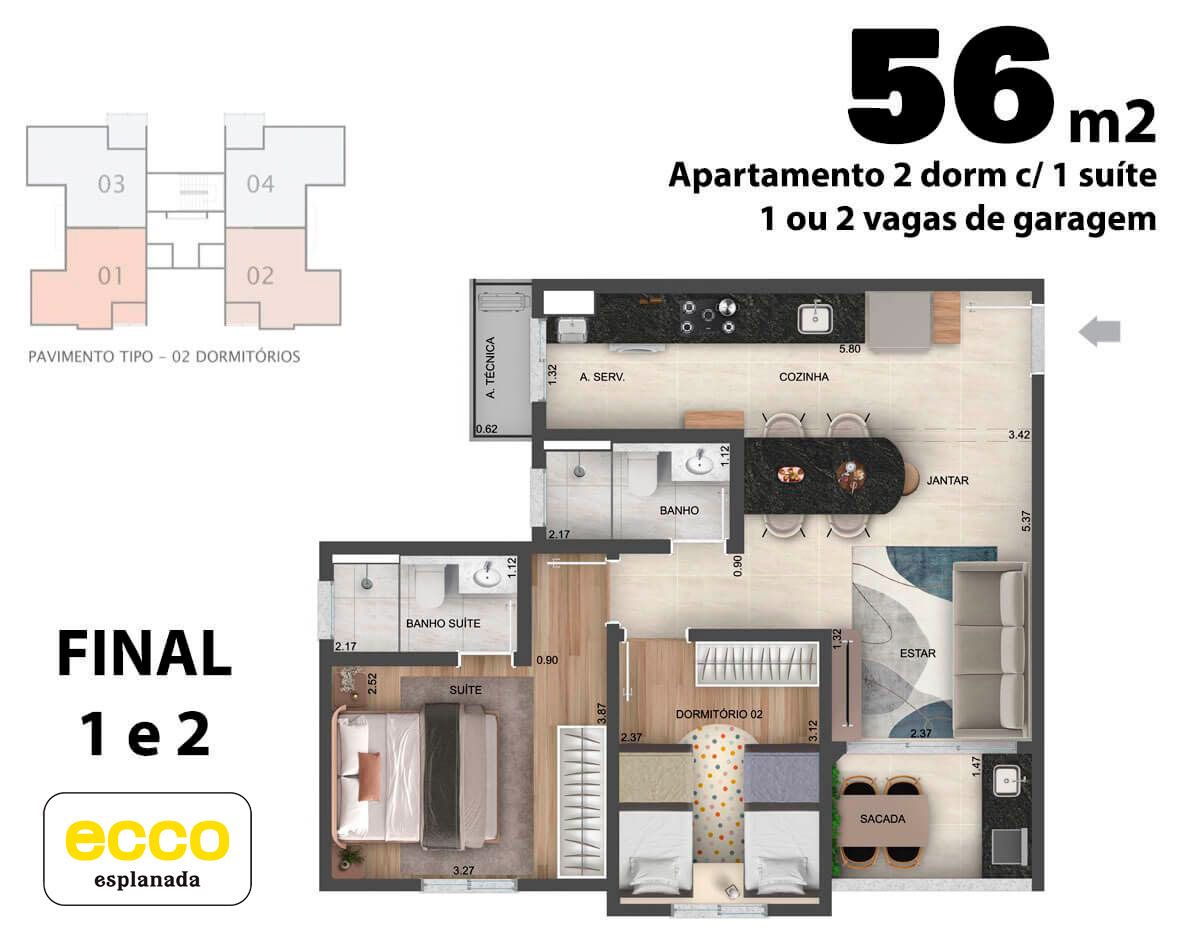 Com quatro opções de planta, o Ecco Esplanada combina conforto, modernidade e um estilo de vida único, feito para atender às suas necessidades e superar as suas expectativas. Aqui, você encontra o lugar perfeito para viver com qualidade.